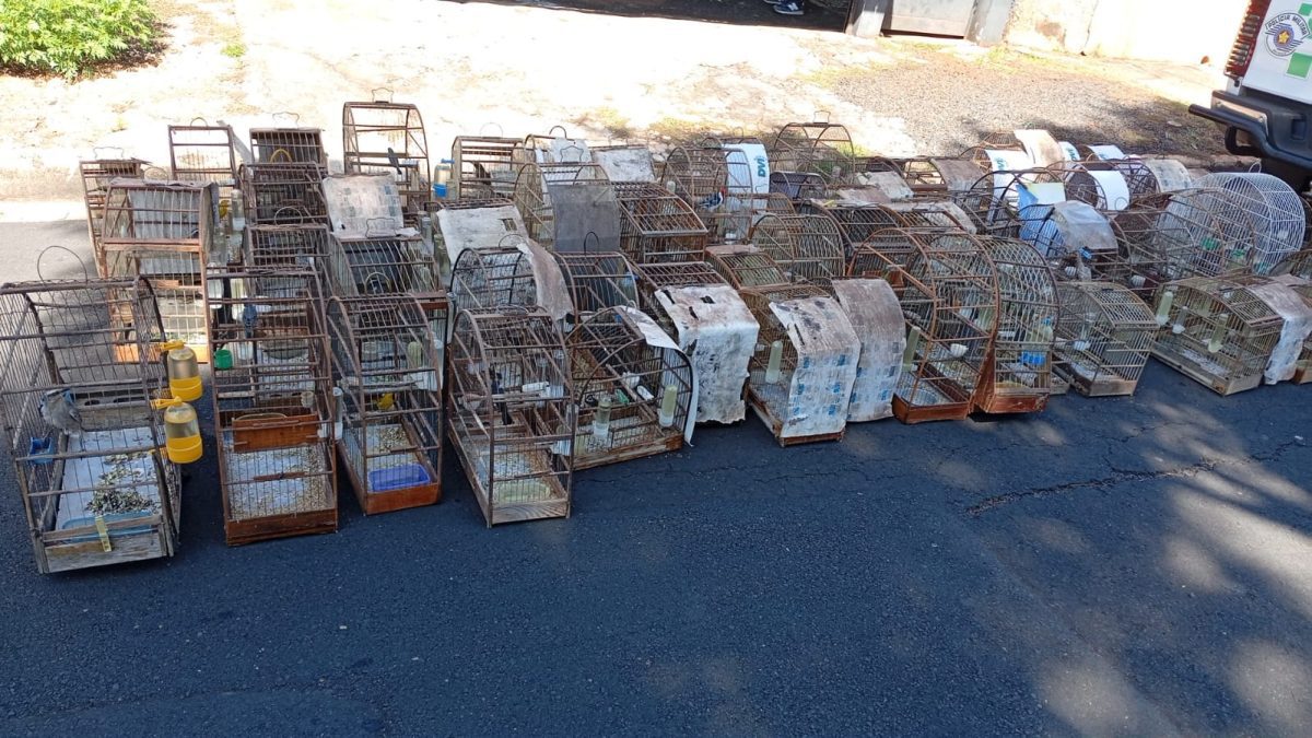 Os policiais acionaram um chaveiro que abriu a porta. Logo que entraram na casa, os policiais avistaram as aves silvestres em cativeiro. Havia muitas. No final, foram contabilizadas 60 aves silvestres.