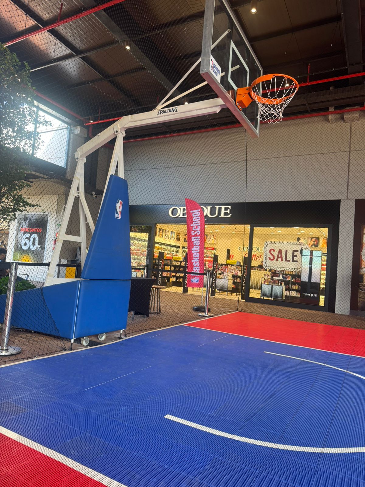 A estrutura principal do evento é uma meia quadra oficial da NBA montada na Praça de Eventos do Outlet, onde ocorrem dinâmicas, torneios e atividades imersivas. A programação inclui disputas de três pontos, desafios de habilidades e partidas de 1 contra 1 e 2 contra 2, além de sessões de autógrafos, apresentações com líderes de torcida e shows de enterradas com atletas especializados, os famosos dunkers. Durante os dias úteis, a quadra também estará aberta ao público em horários específicos para o Free Play, com monitoria.
